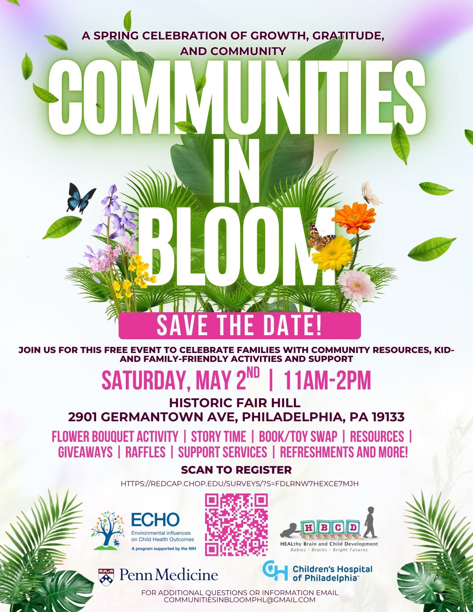 For additional questions or information, email communitiesinbloomphl@gmail.com or reach out to PennCHOPECHO@pennmedicine.upenn.edu